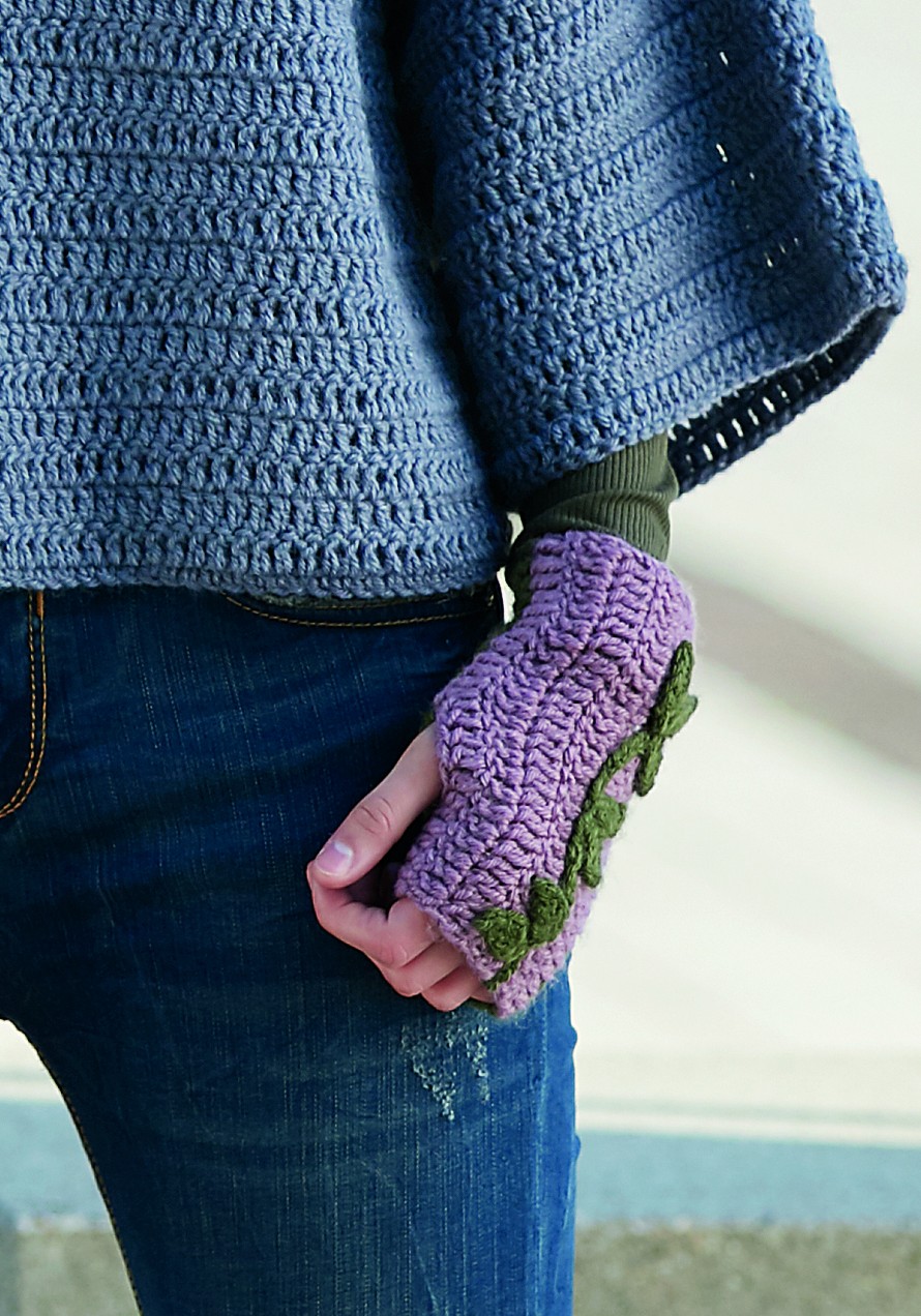 Känsikkäät virkataan poikittain ja koristellaan lehtiköynnöksillä.