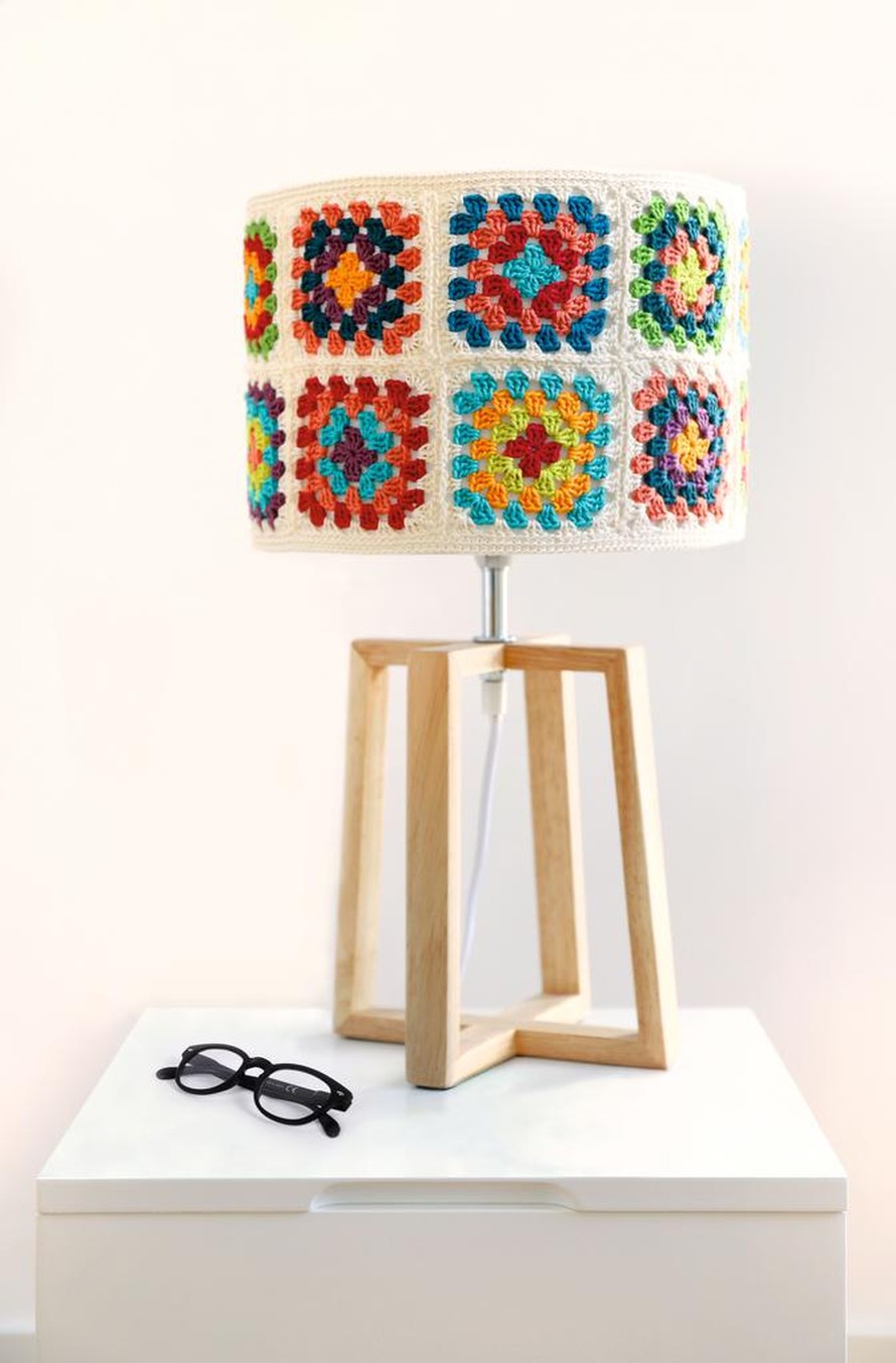 Lampunvarjostin isoäidinruuduista.