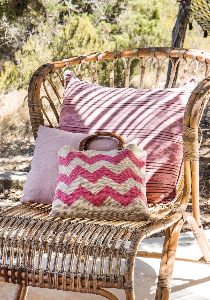 Kirjovirkattu laukku.