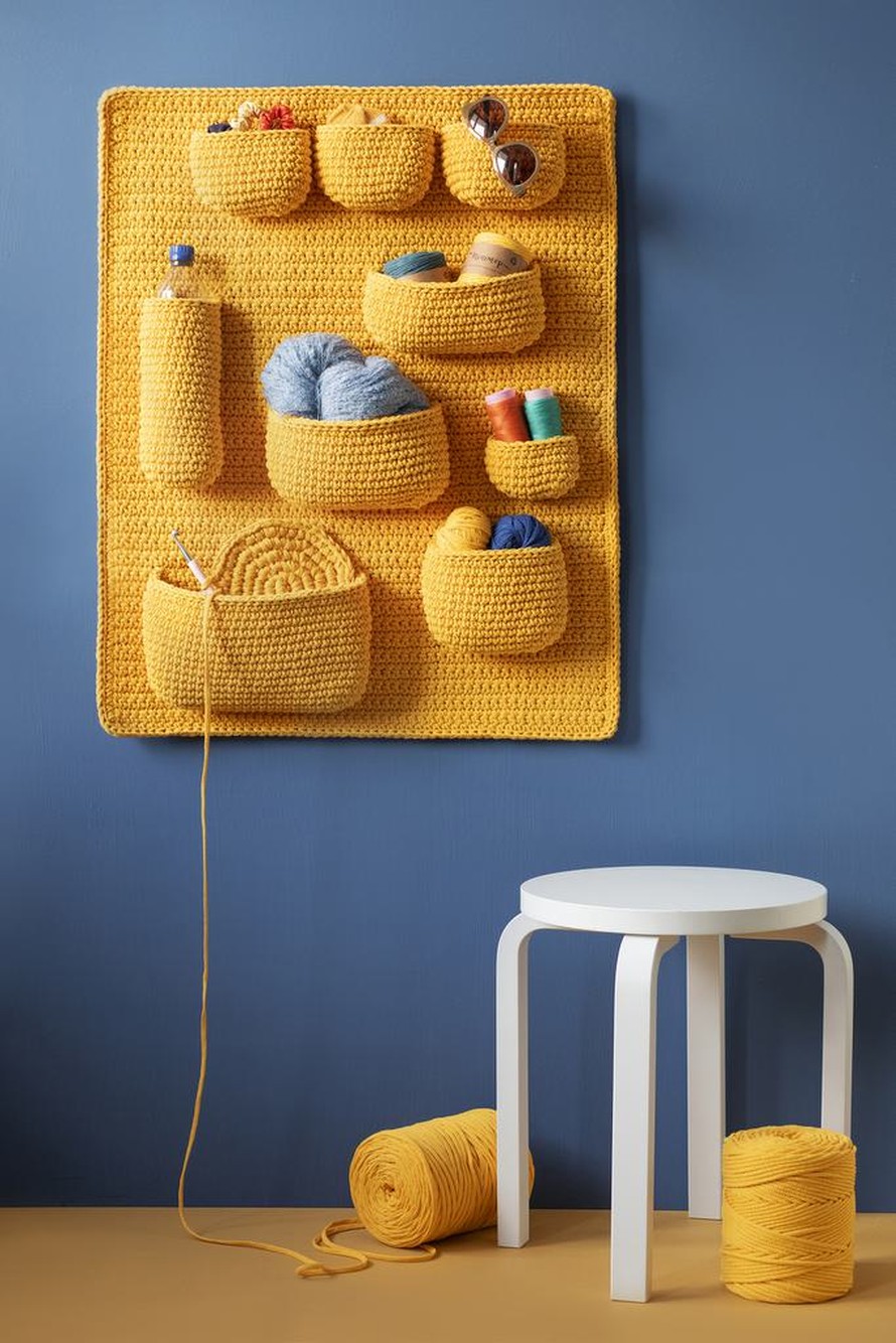 Virkattu, kaunis seinälokerikko, koko 62 x 80 cm.