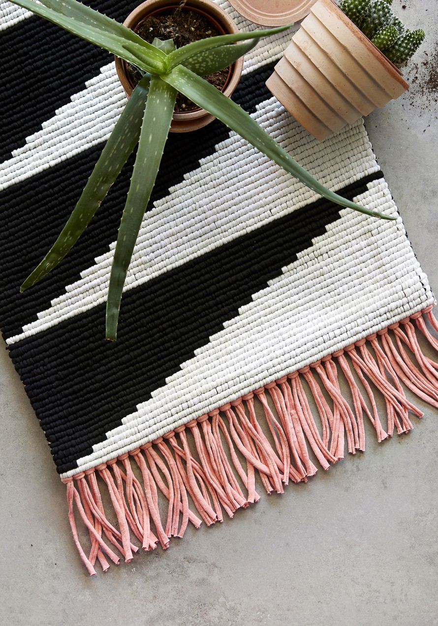 Helmivirkattu matto.