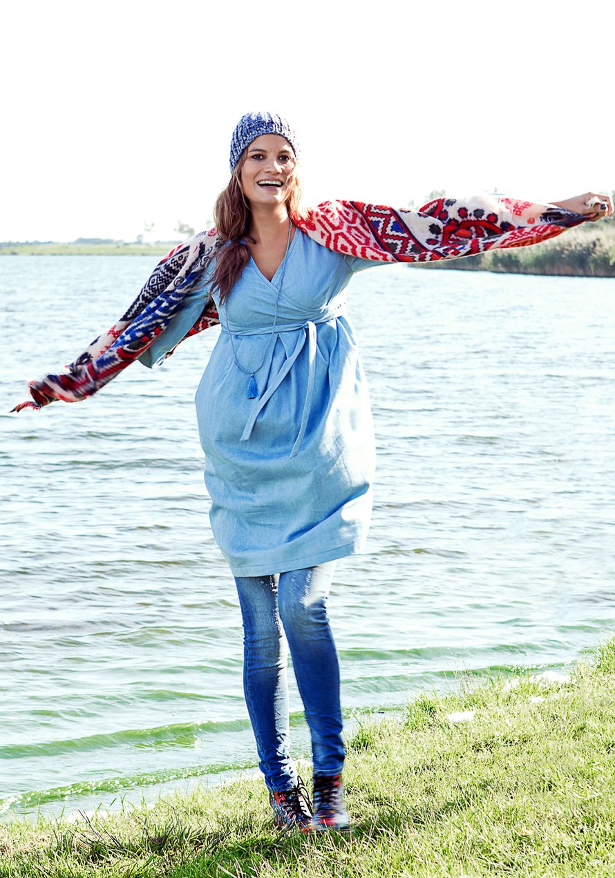 Suuri Käsityö 8/2016 s. 18Äitiysmekko, pehmeää farkkukangasta