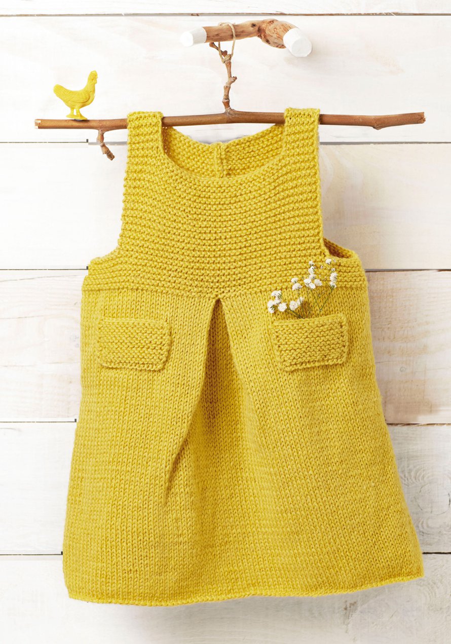 Suuri Käsityö 1/2017 s. 64Neulottu liivimekko taskuilla.