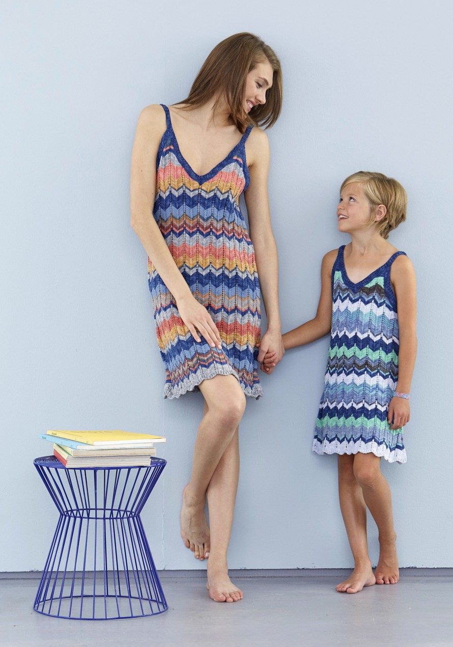 Neulottu mekko lapselle ja aikuiselle.
