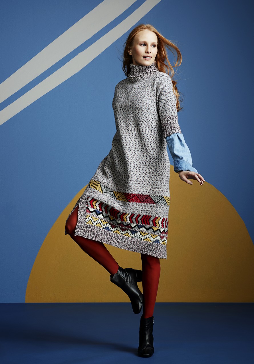 Poolomekko kuvioraitahelmalla.