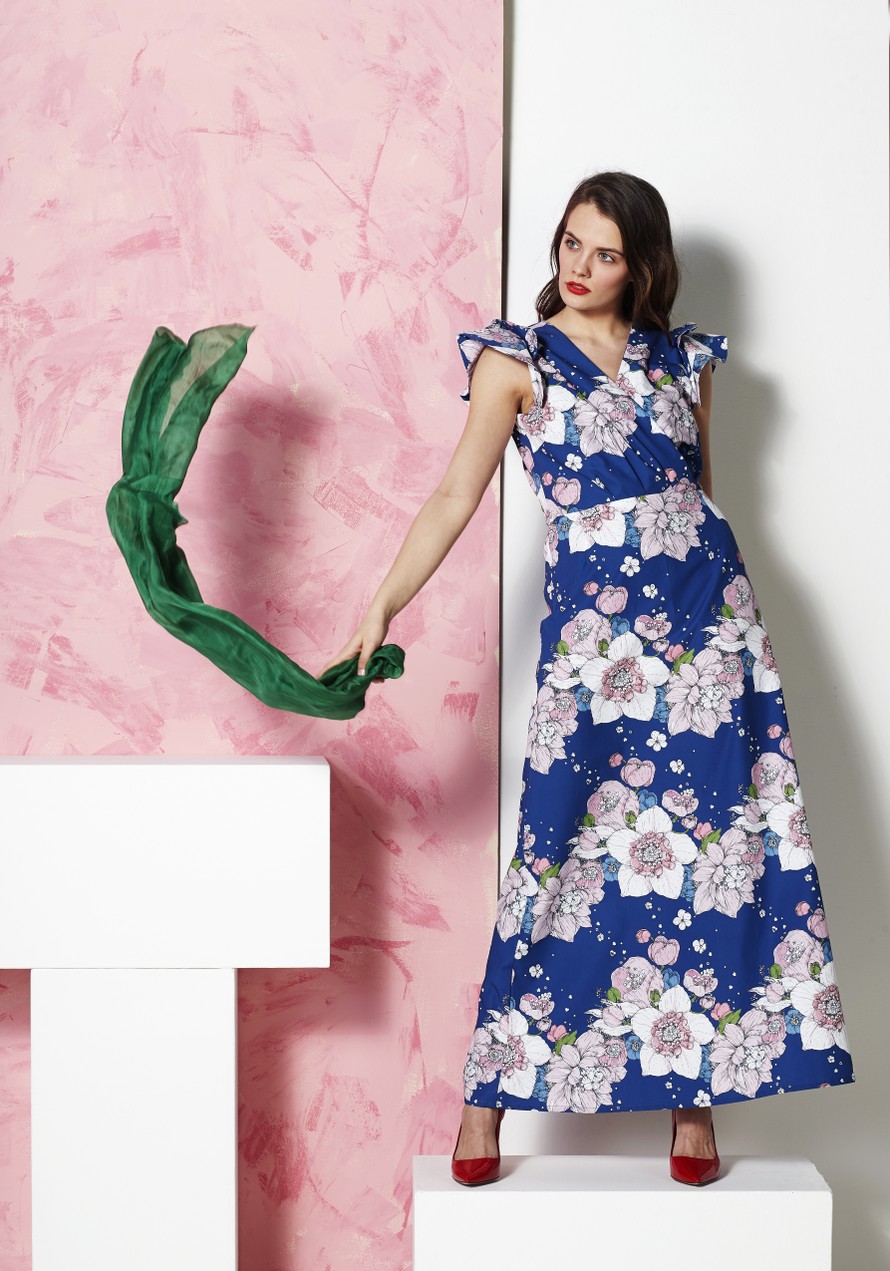 Mekko, jossa tuplahihat ja pitkä helma.