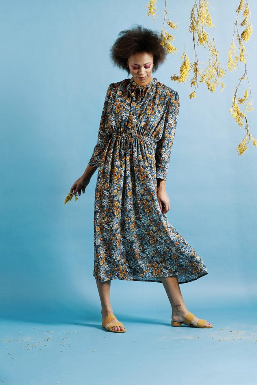 Pitkähihainen ja-helmainen mekko.