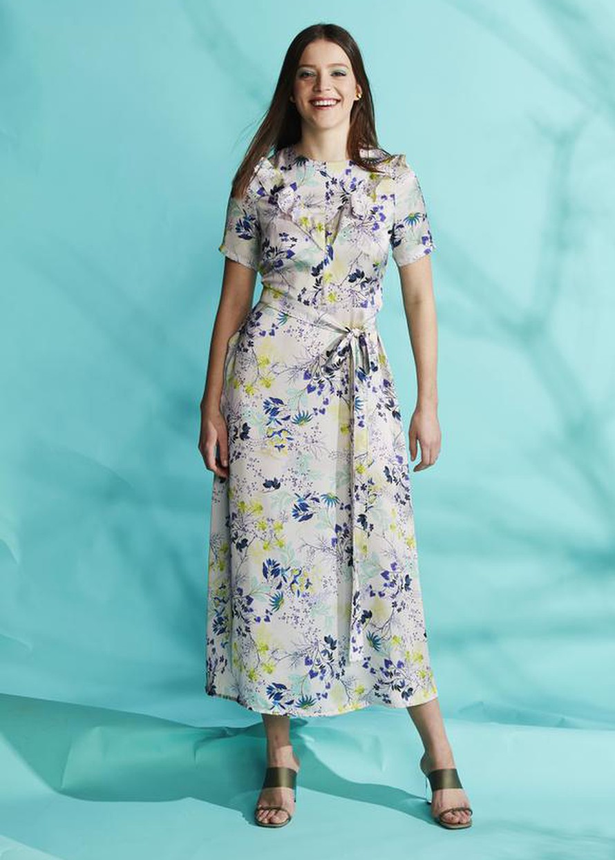 Pitkä kukkamekko.
