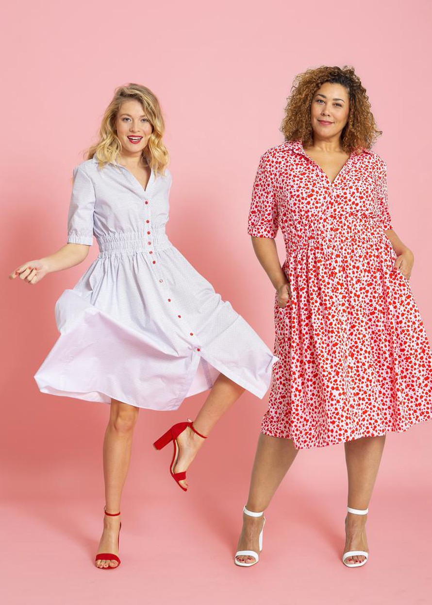 Nappilistamekko vyötärökuminauhalla.