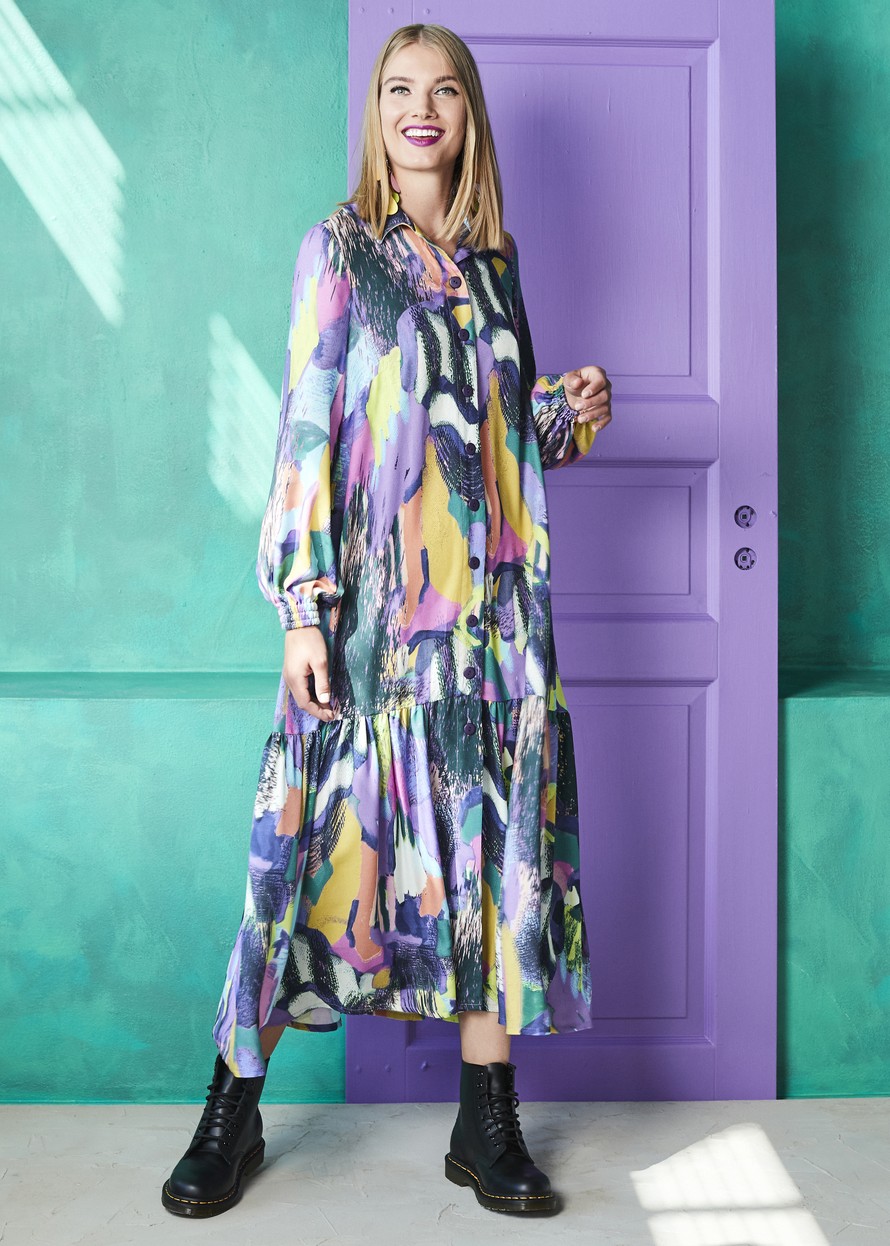 Muodikas, ylisuuri mekko.