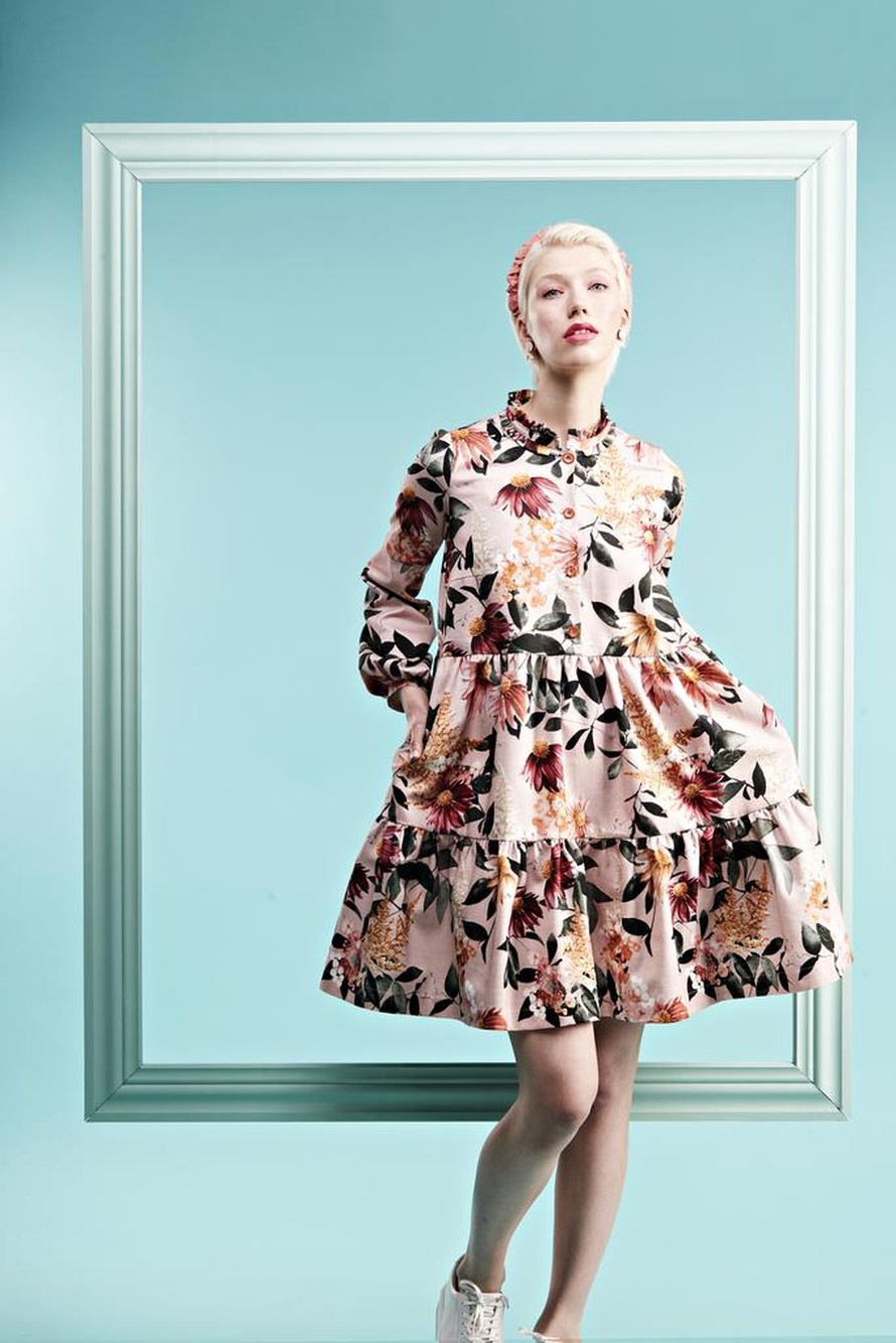 Poimuteltu mekko.