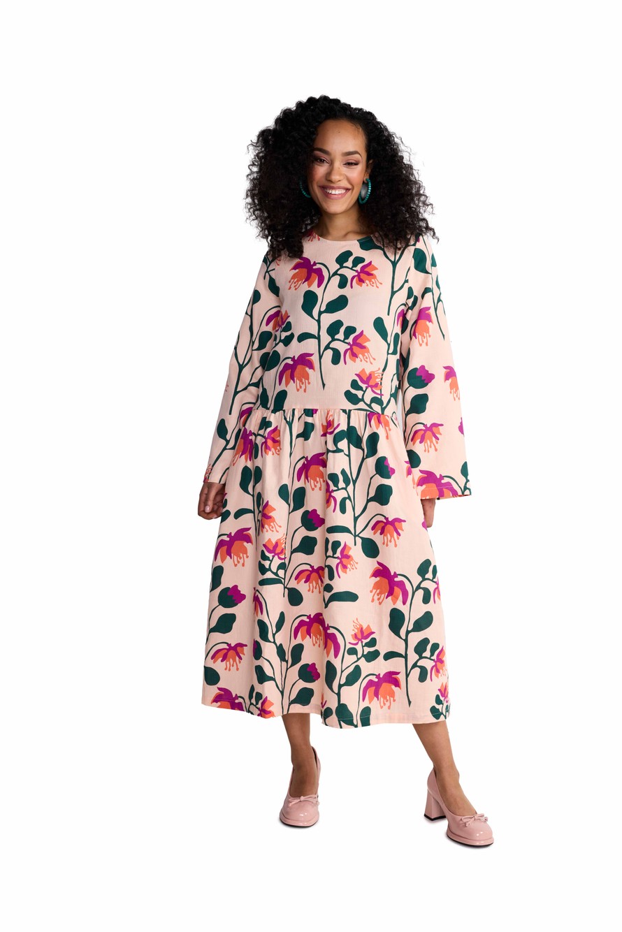 Outi Ranuan suunnittelema rehevä Peach Botania -mekko.