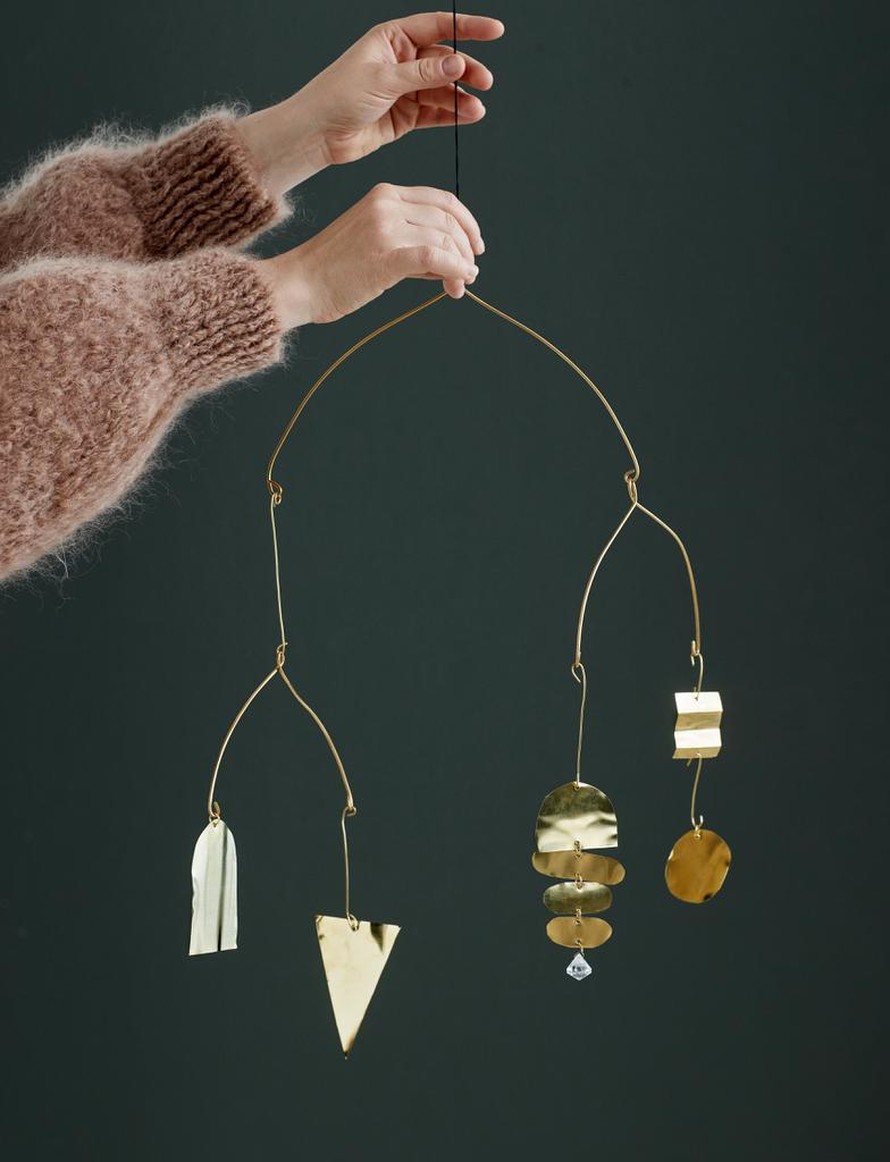 Metallilevyistä tehty mobile.