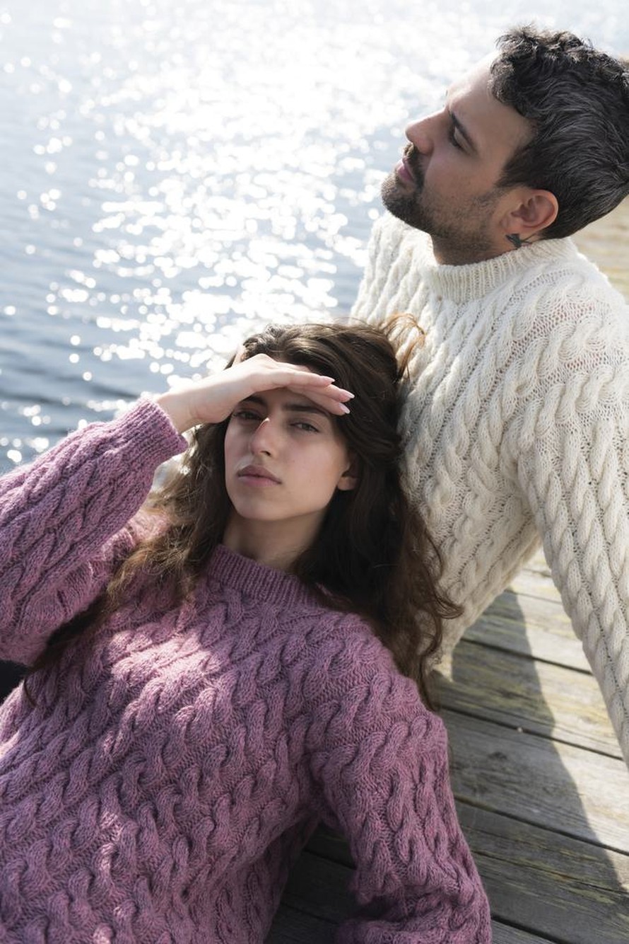 Klassinen palmikkoneulepusero naiselle.