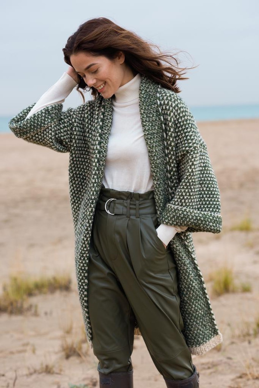 Neuletakki, jossa kaksinkertaista helmineuletta.