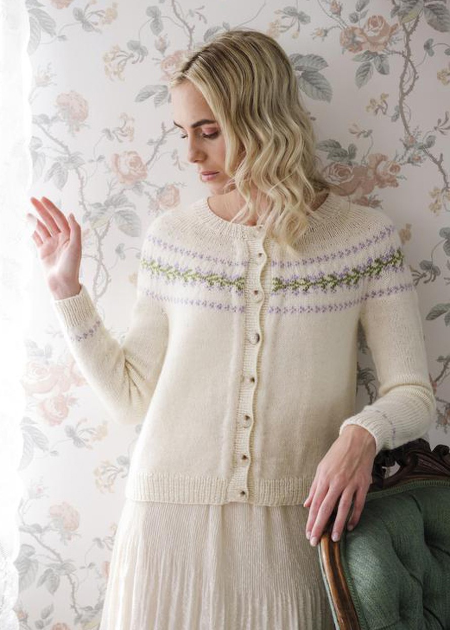 Neuletakki kukkaköynnöskoristeella.