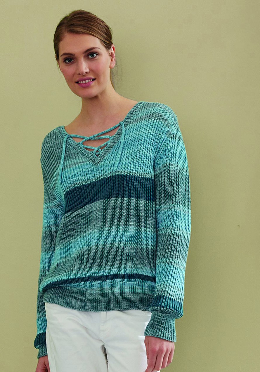 Neulottu kesäpaita naiselle, missä V-pääntie.