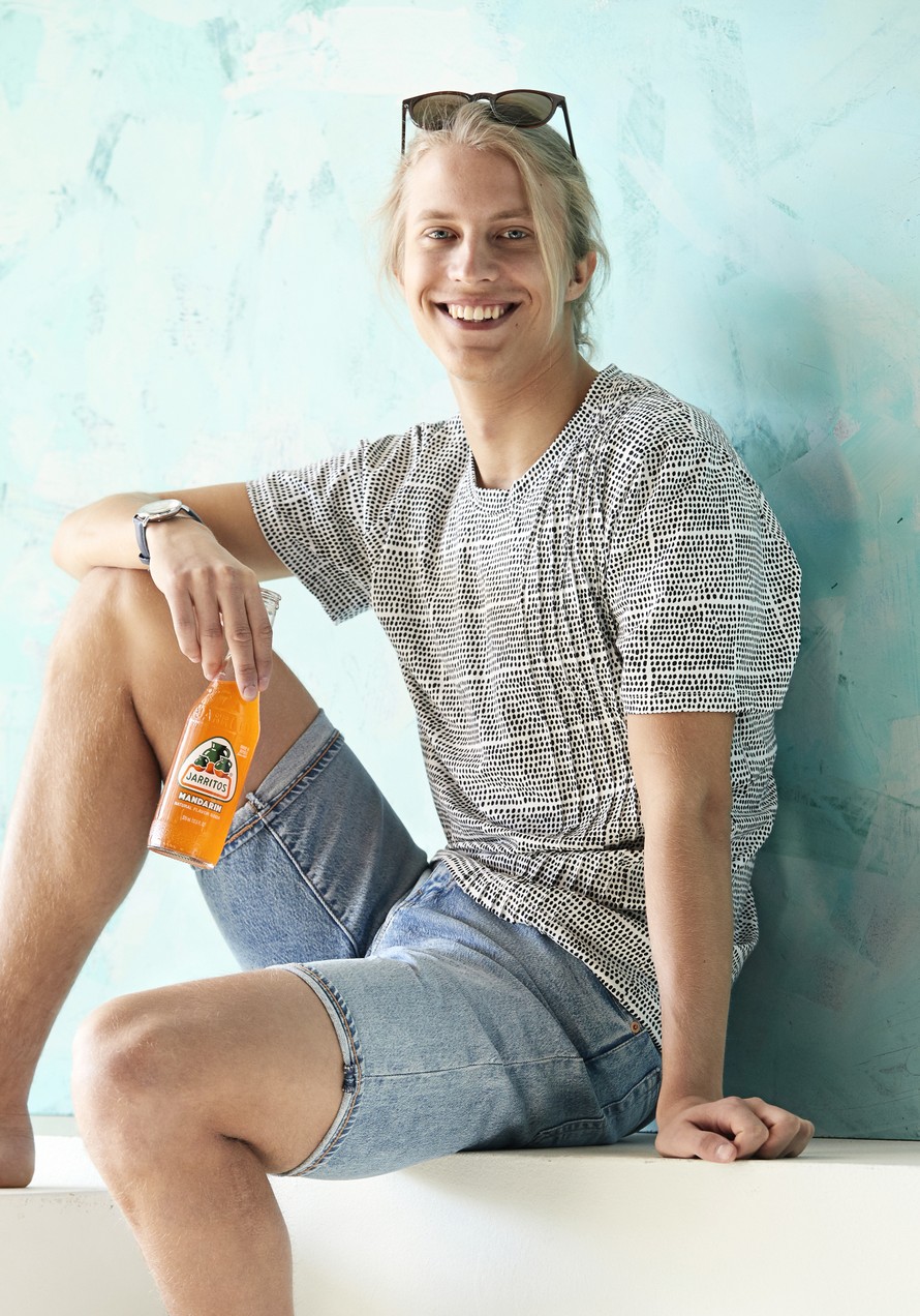 T-paita, jossa edessä hiuslaskokset.