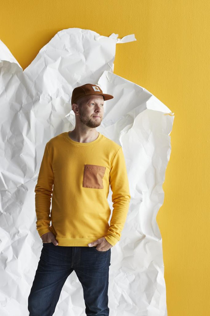 Miehen collegepaita.