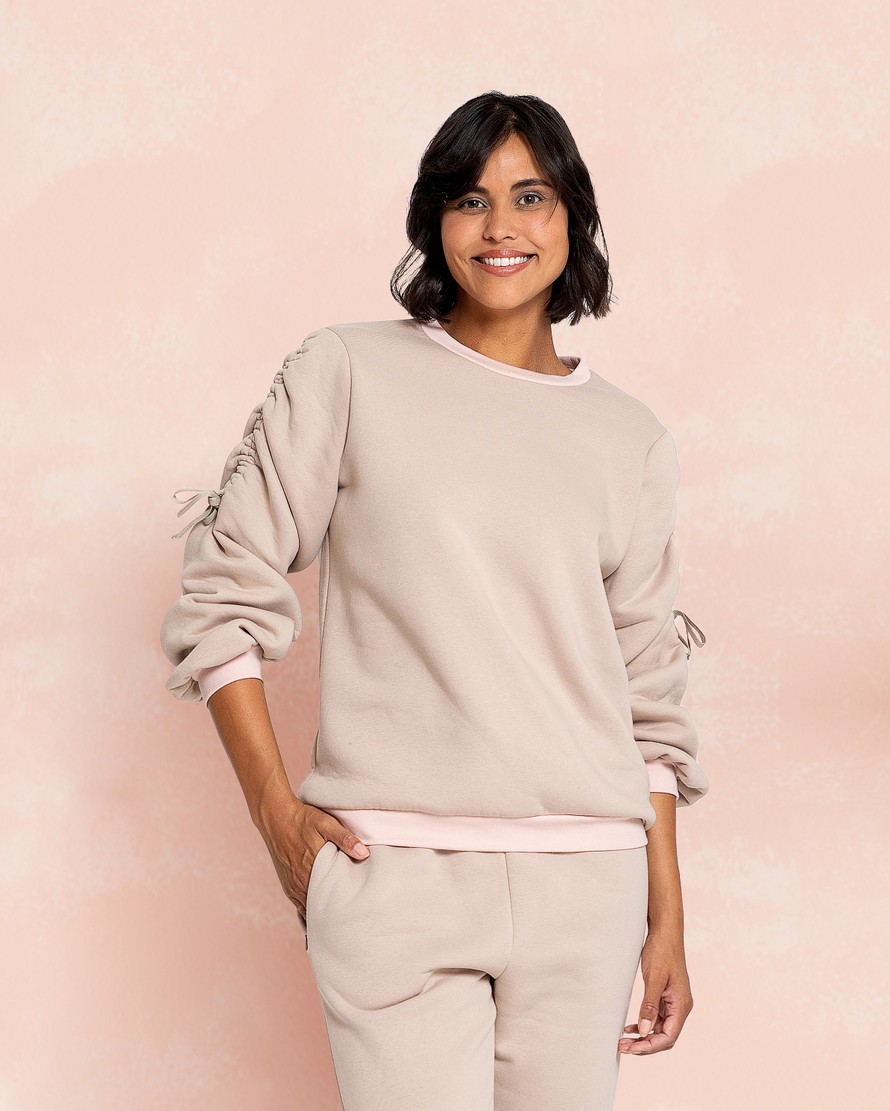 Collegepaita naiselle, jossa rypytetyt hihat.