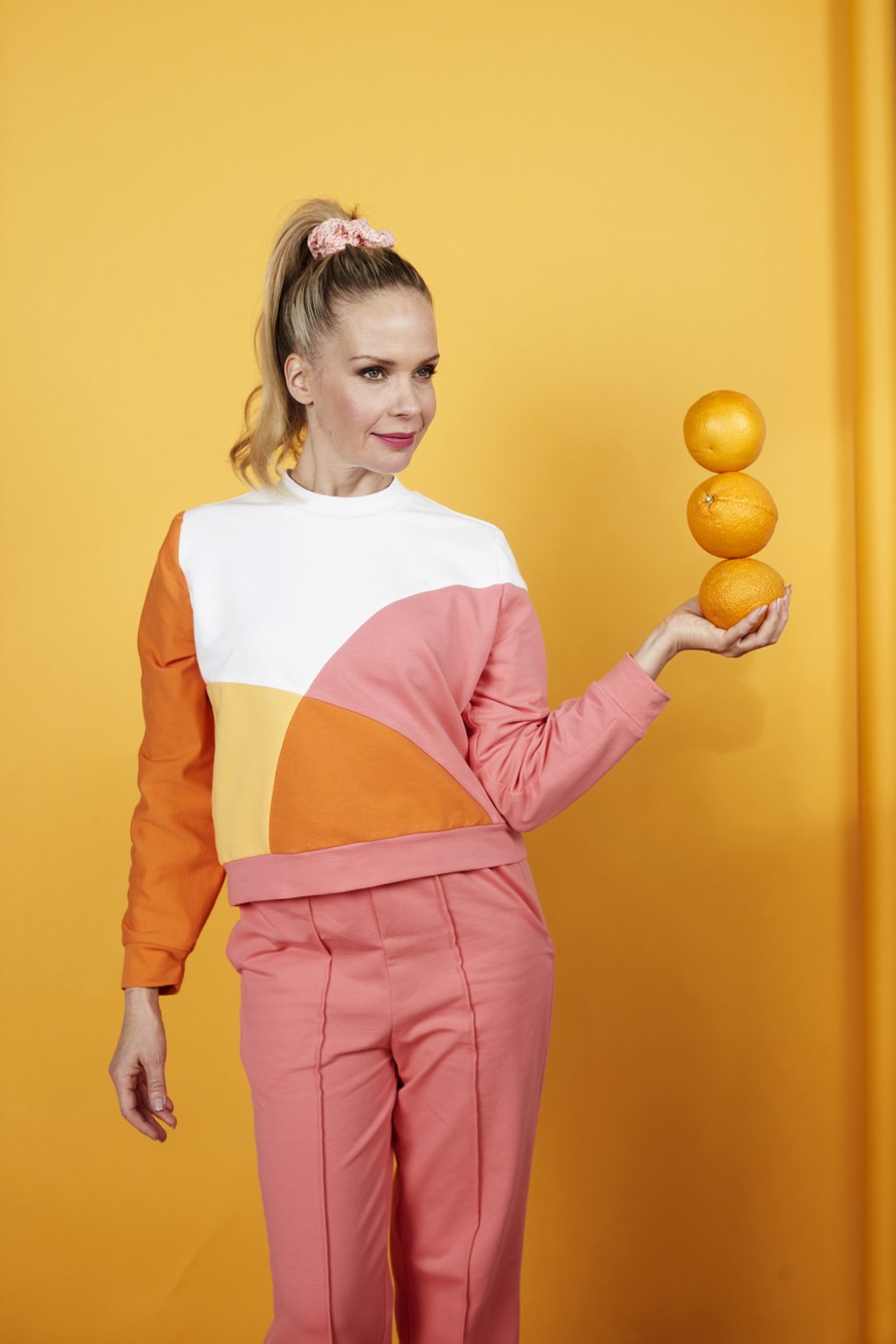 Ysärihenkinen, college-kankaasta ommeltu paita.