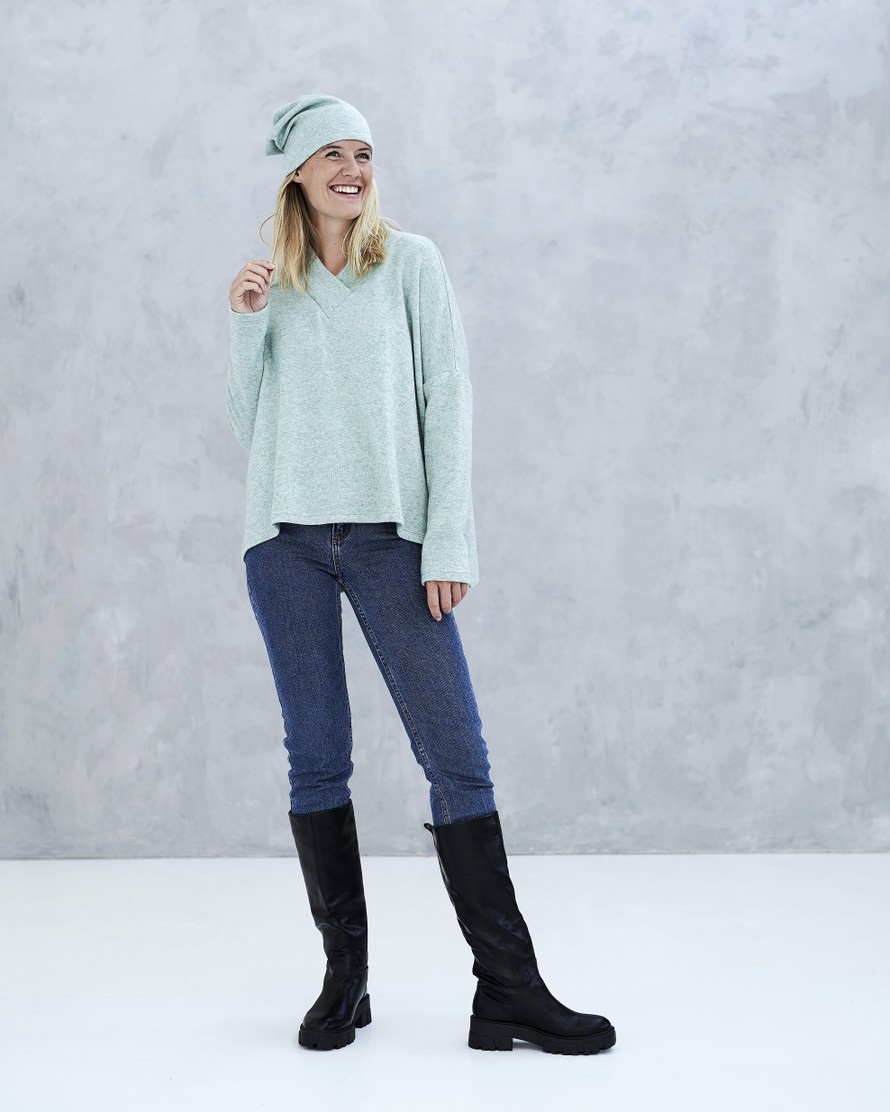 Lämpöinen merinoneuloksesta ommeltu paita.