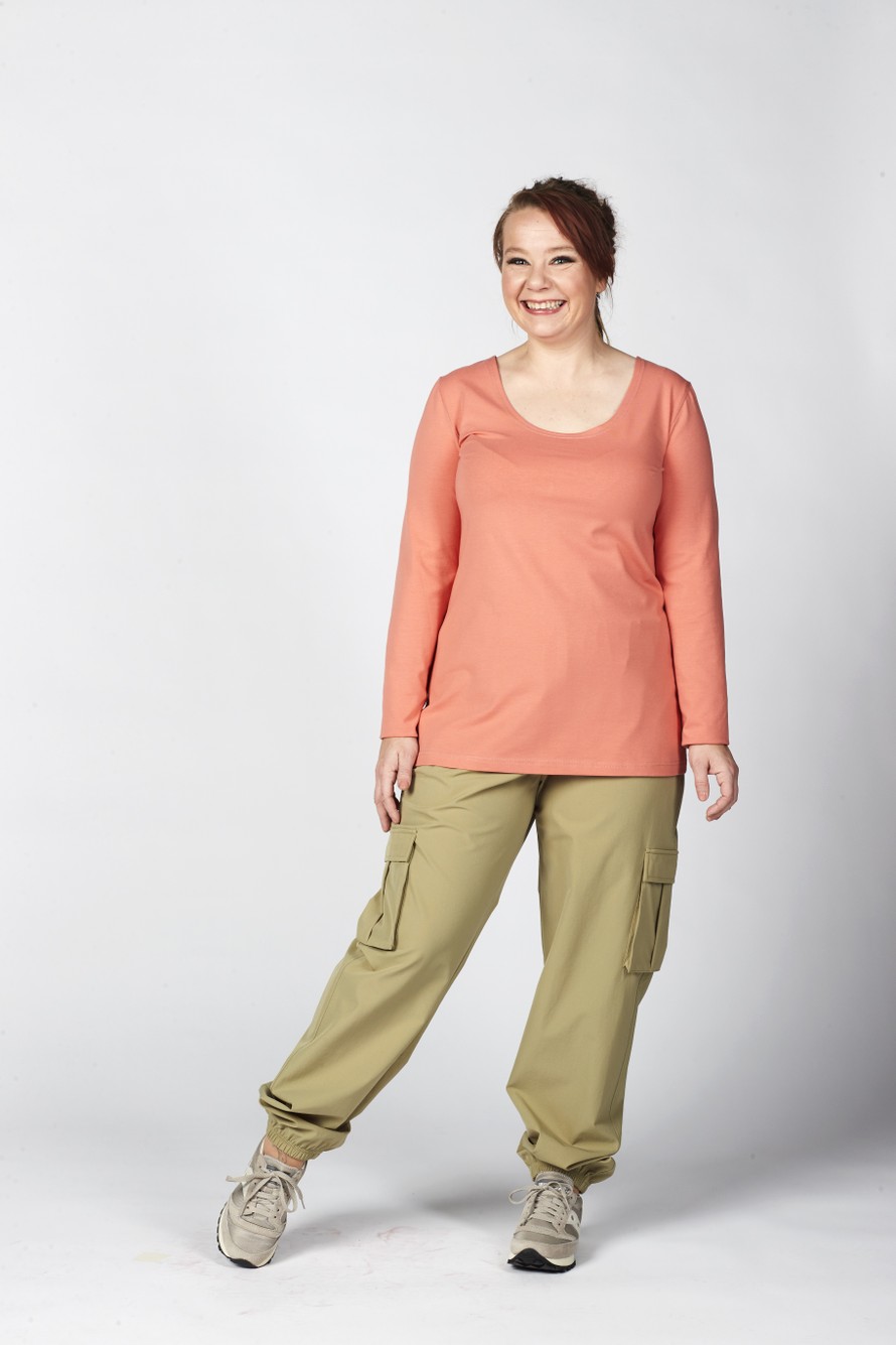 Ristikkoselkäinen trikoopaita.