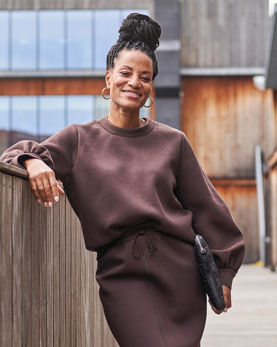 Collegepaita, missä trumpetinmuotoiset hihat.