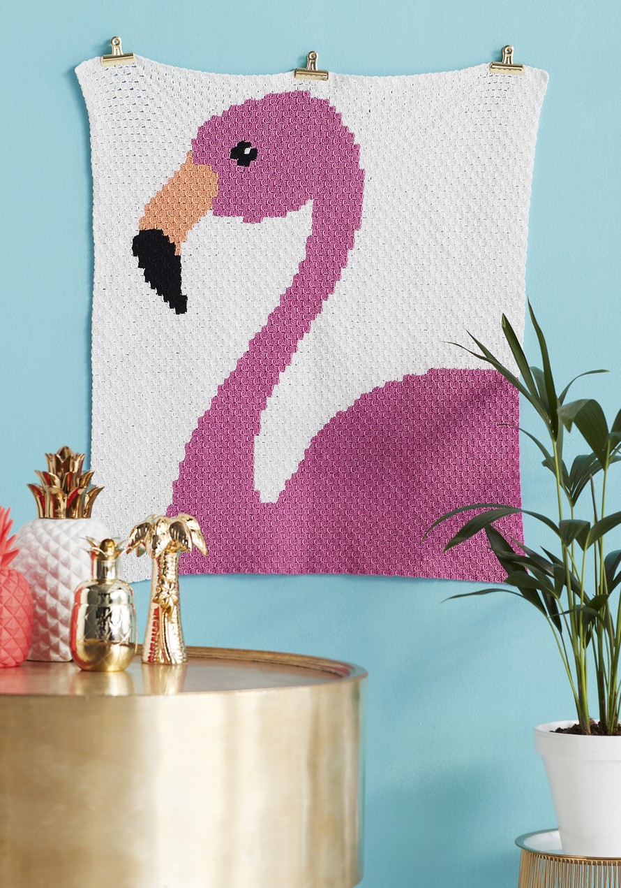 Pikselivirkkauksena tehty flamingopeitto.