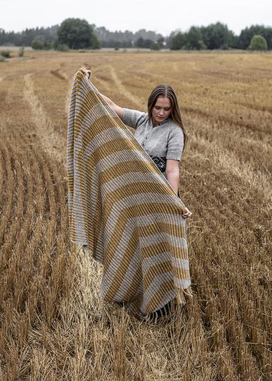 Virkattu raitapeitto.