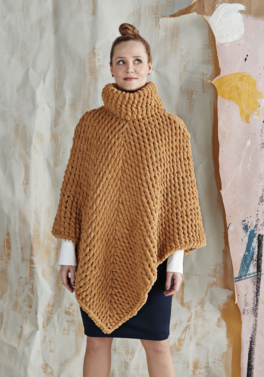 Sormin neulottu pehmoponcho.