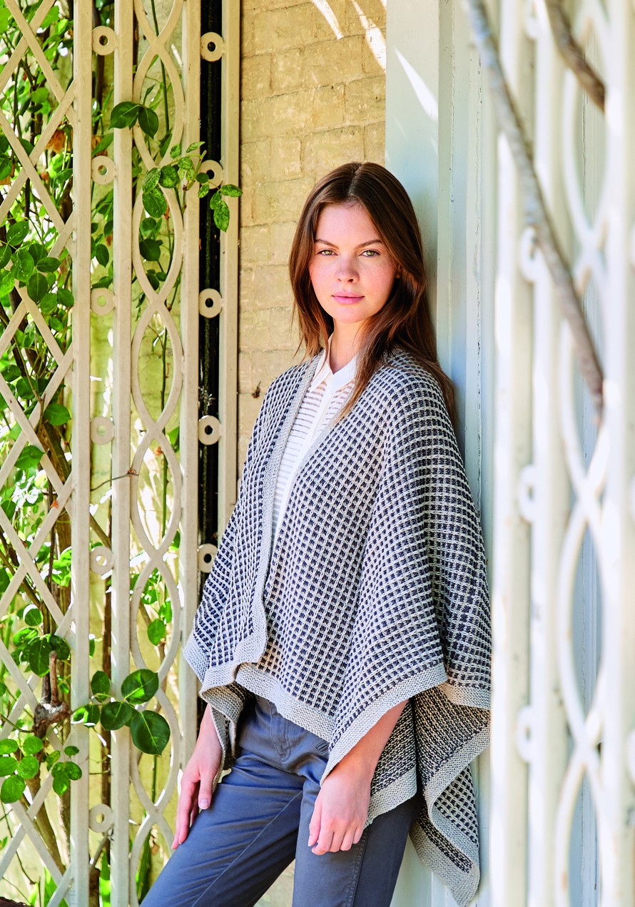 Hartiahuivimainen poncho, joka on auki edestä.