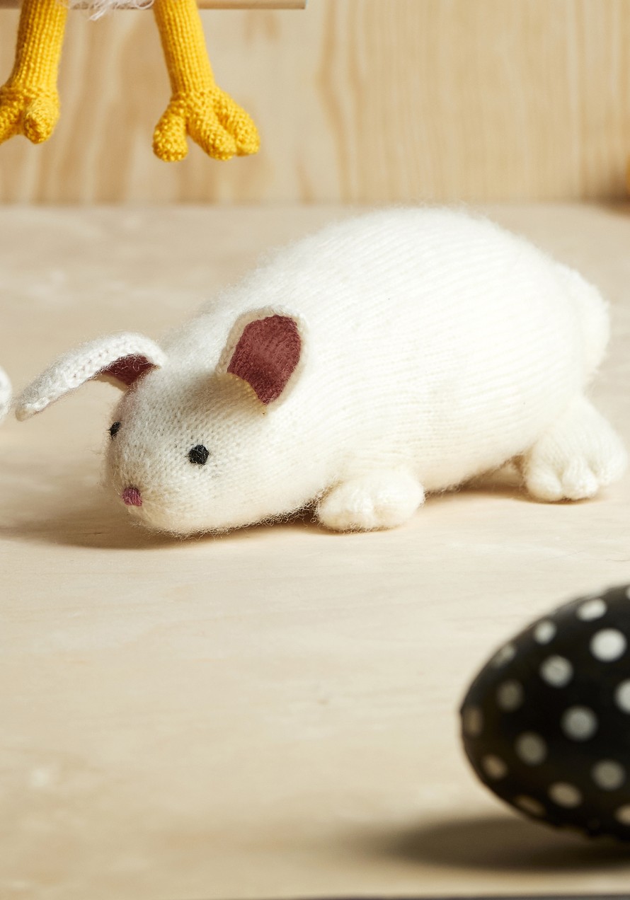 Neulottu pehmolelu pupu.