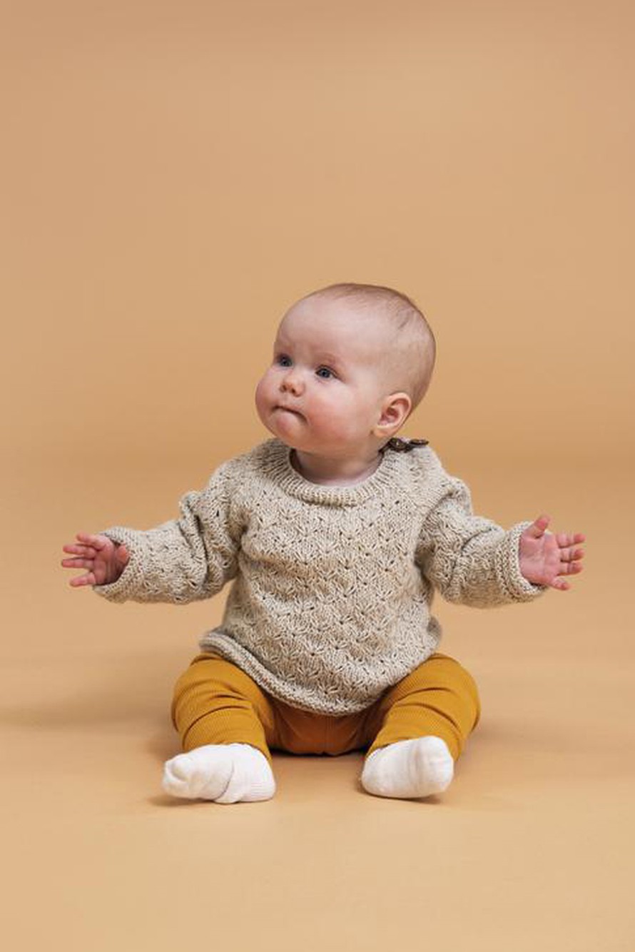 Vauvan pitsineulepusero koossa 46(56)68(80)92 cm.