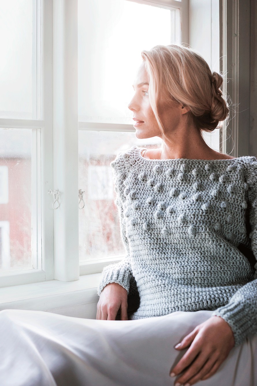 Pusero, jossa on kaarrokkeessa pallurakoristeet.