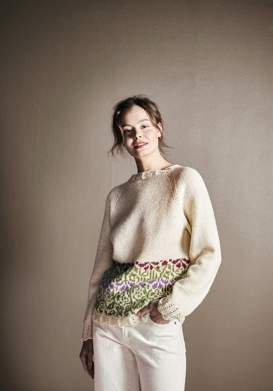 Merja Ojanperän suunnittelema Keväthaaveita-pusero.