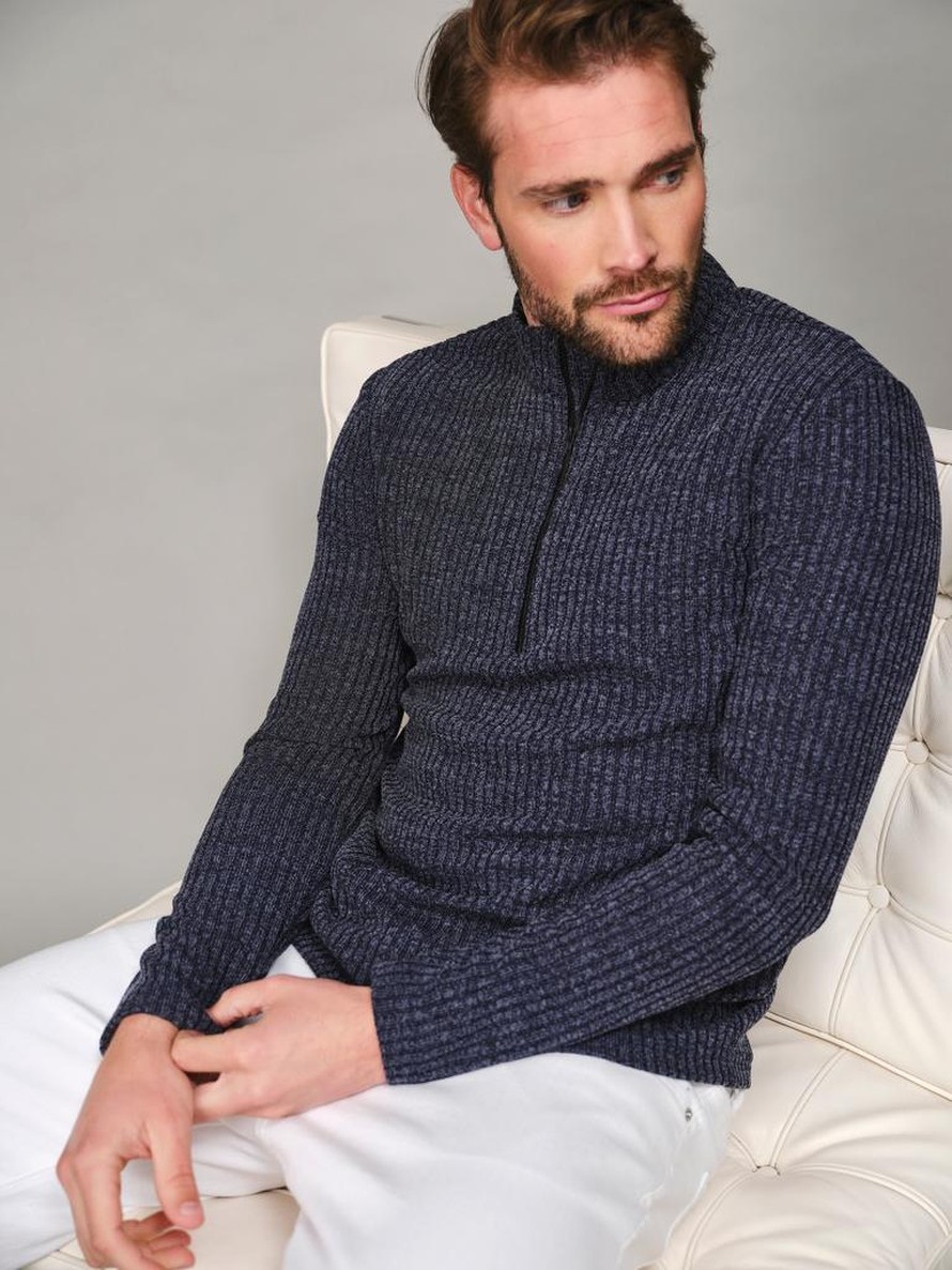 Vetoketjullinen miehen peruspaita ribbineuleesta.
