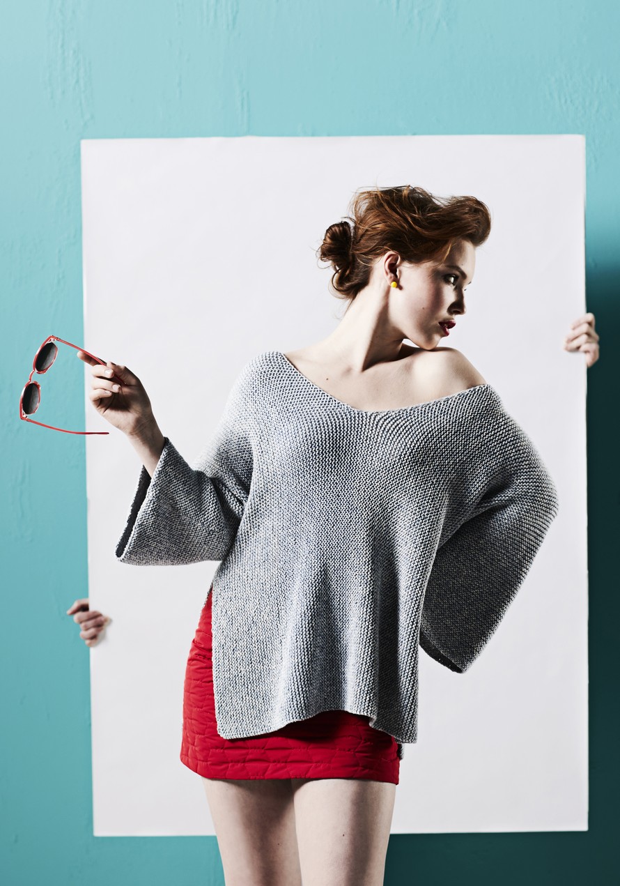 Neulottu kesäpaita, jossa kapeahko V-pääntie.