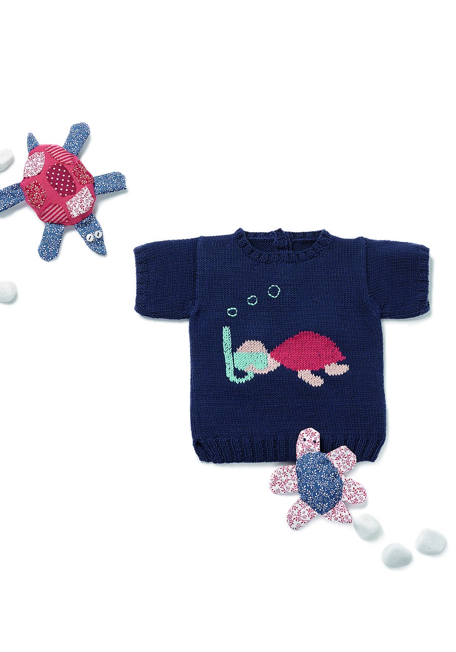 Lyhythihainen pusero kilpikonnakuviolla.