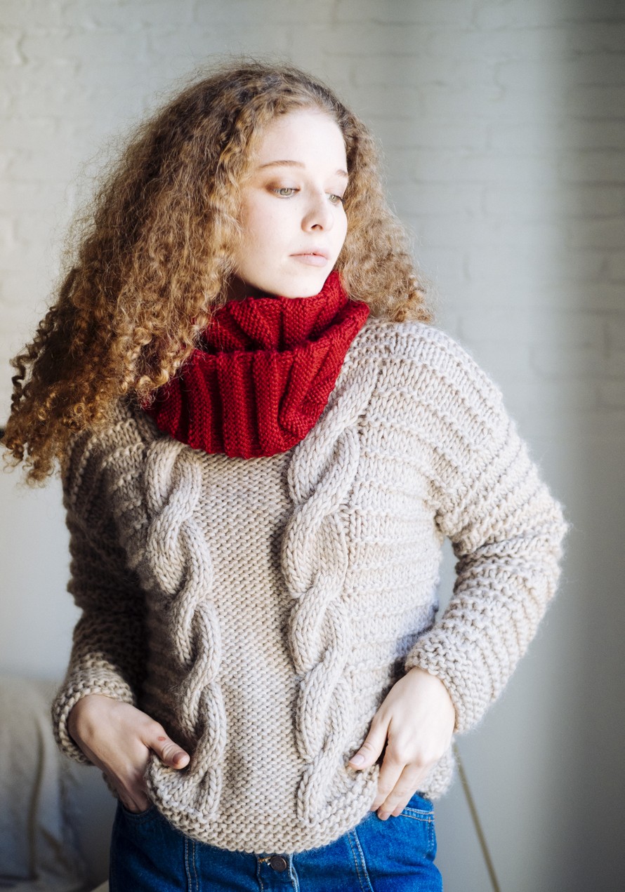 Palmikkoneulepusero.