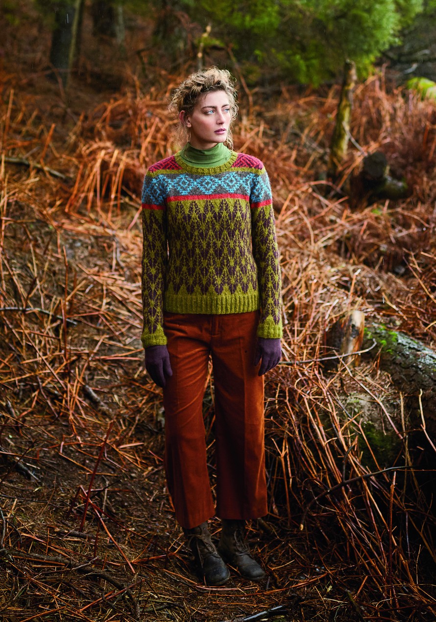 Kirjoneulepaita upeilla kuvioilla.