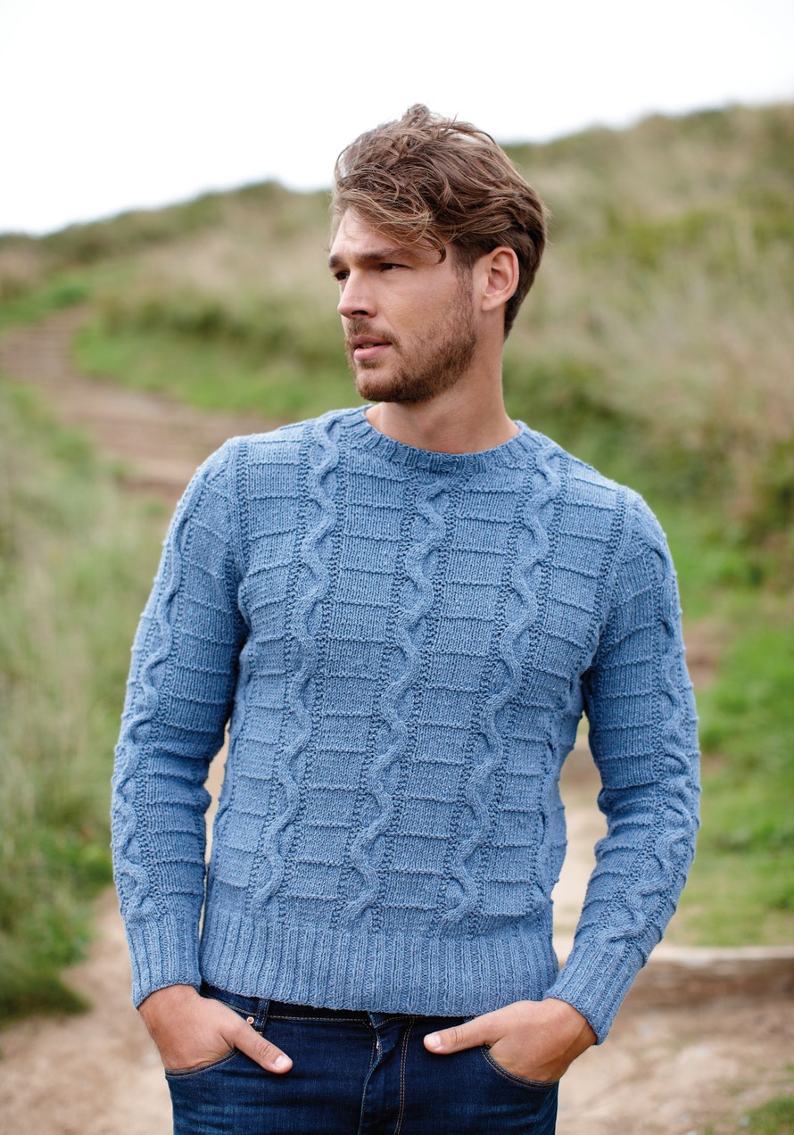 Pusero, jossa on tehosteraidat, ainaoikeaneule sekä palmikoita.