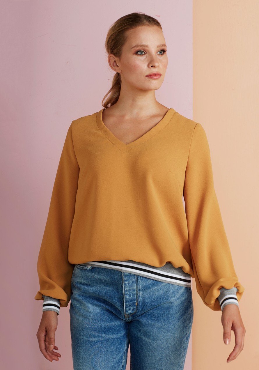 Laskeutuvasta krepistä ommeltu pusero.