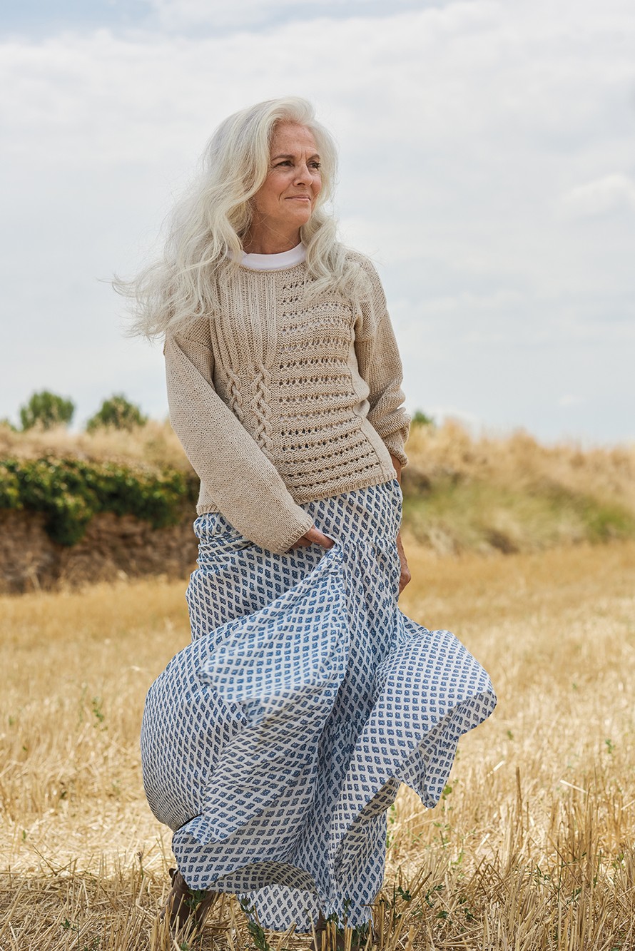 Pusero, jossa on pitsiä ja palmikkoa.