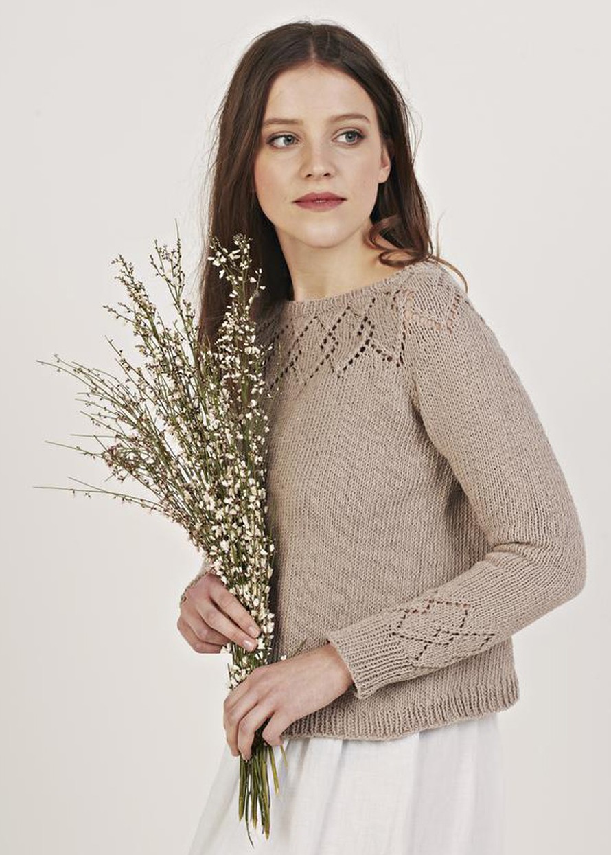 Puuvillapusero, jossa pitsikaarroke.