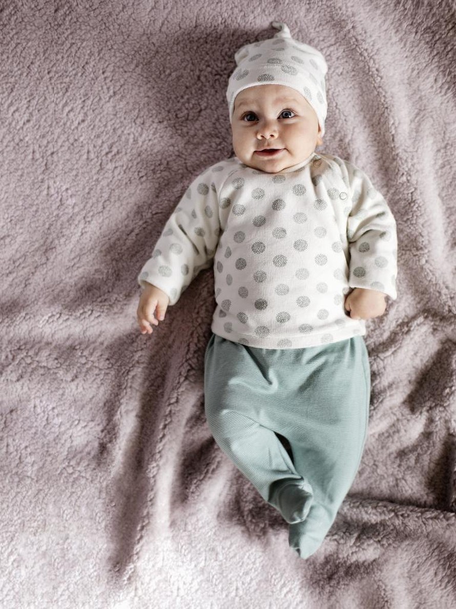Nuttu, jonka saa kokonaan auki. Lakki on ommeltu tilkuista. Koot 44-74 cm.