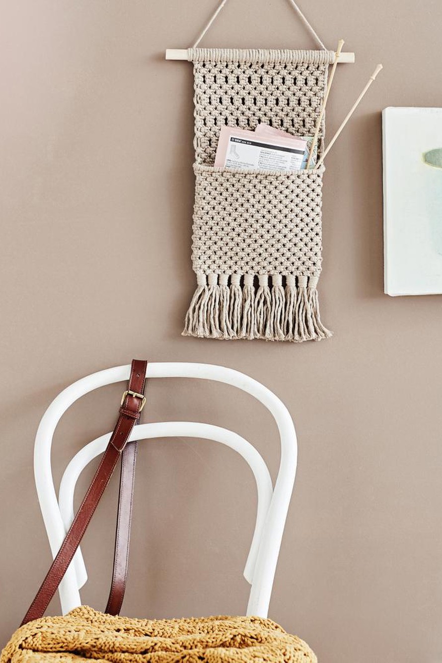 Seinätasku makrameetekniikalla.