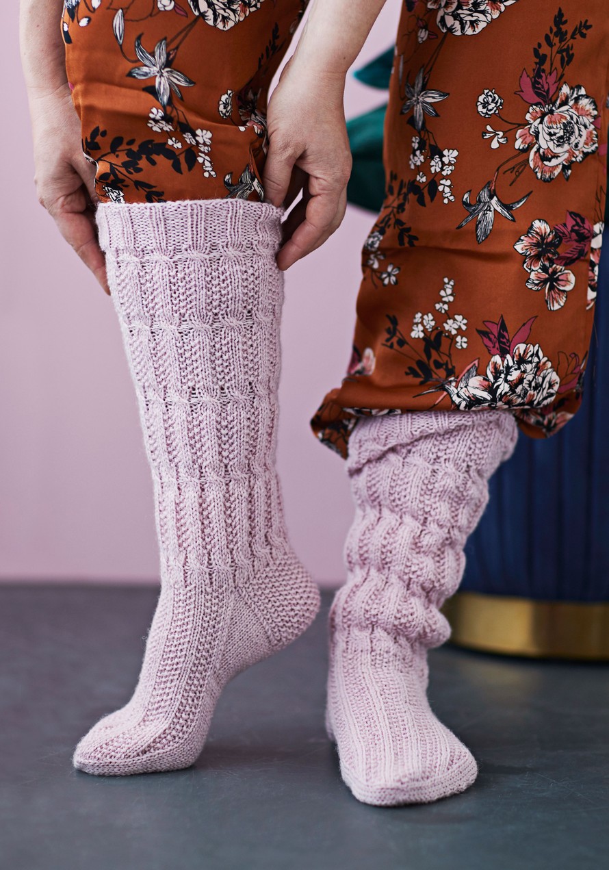 Polvikorkuiset palmikkosukat