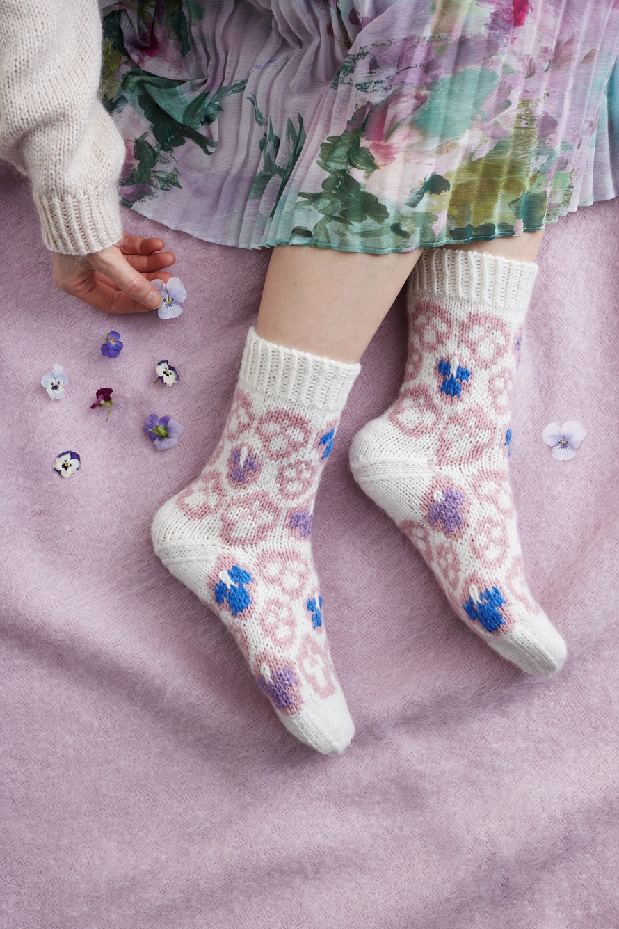 Orvokkisukat, koko 38/39.