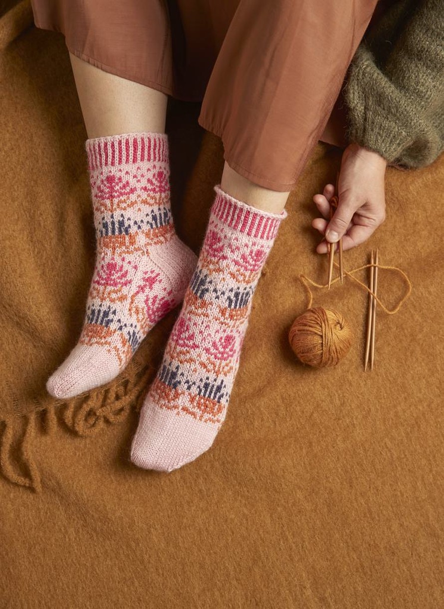 Kaisa Turtiaisen suunnittelemat Yrttitarha-sukat, koko 39.